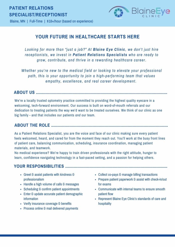 Eye Doctor Blaine | Current Job Openings | Blaine Eye