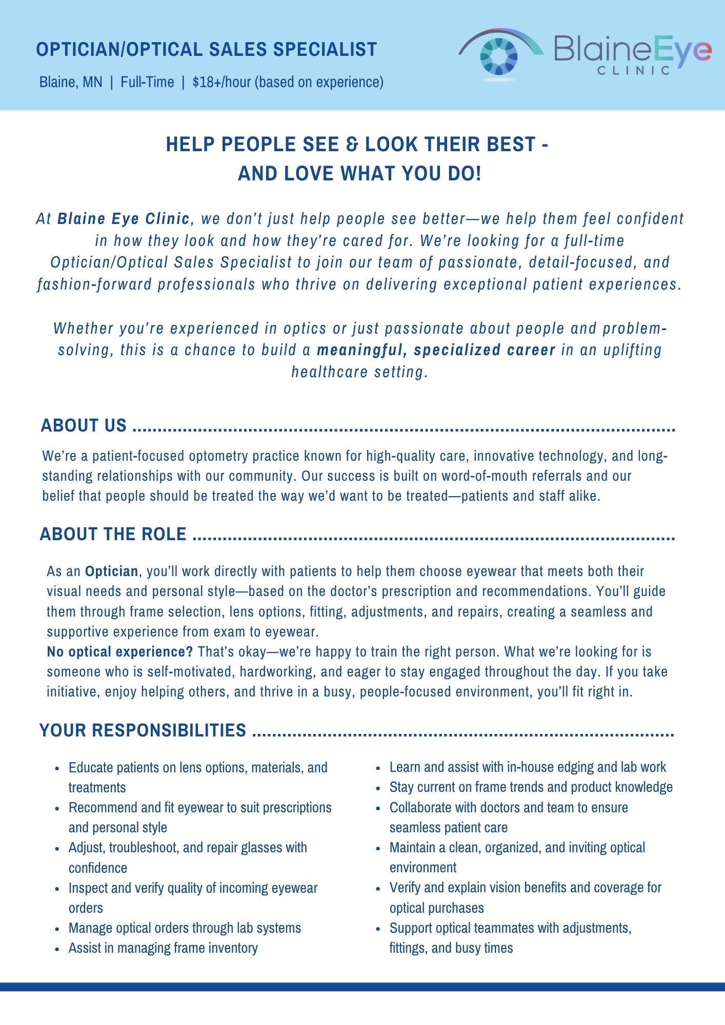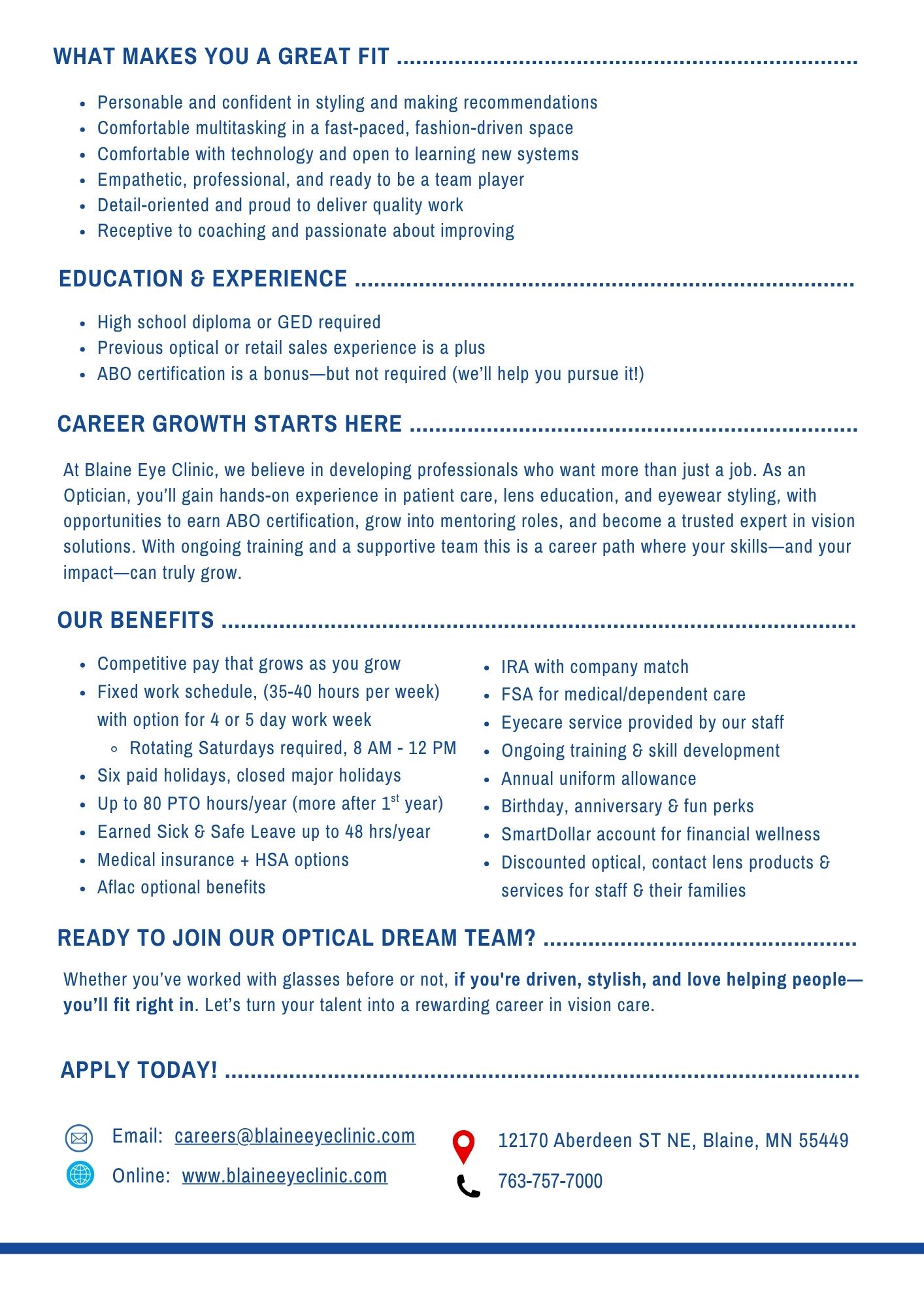 | Salary/Wage: | Competitive, starting $18.00 and up, based on qualifications |