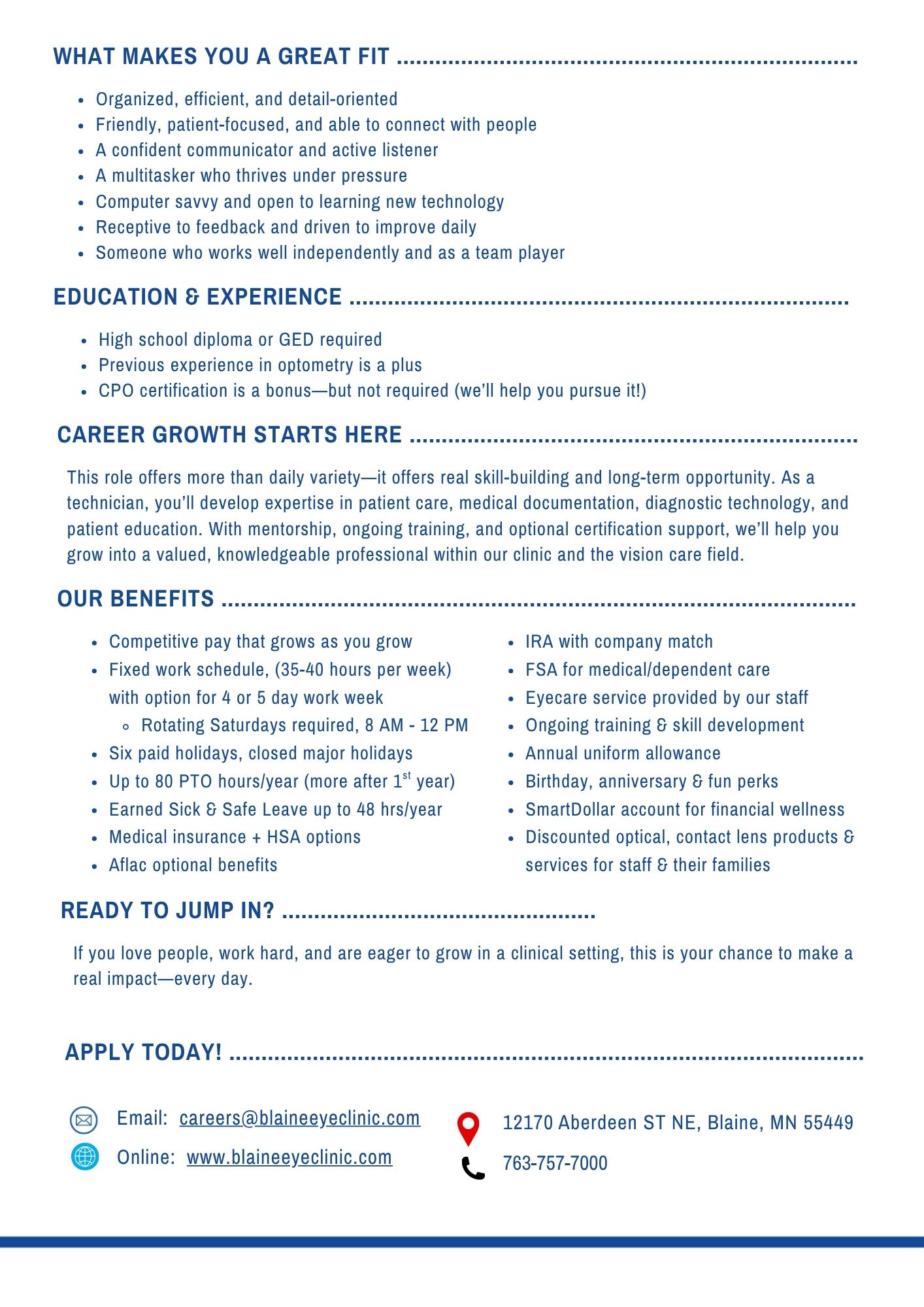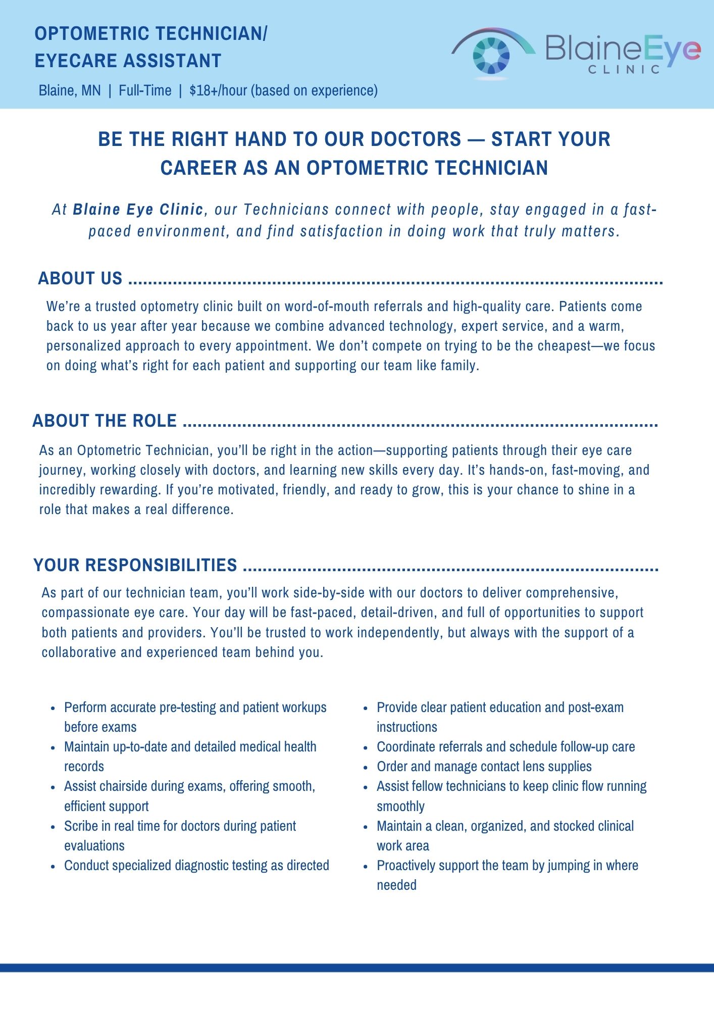 | Salary/Wage: | Competitive, starting wage $18.00 and up, based on qualifications |