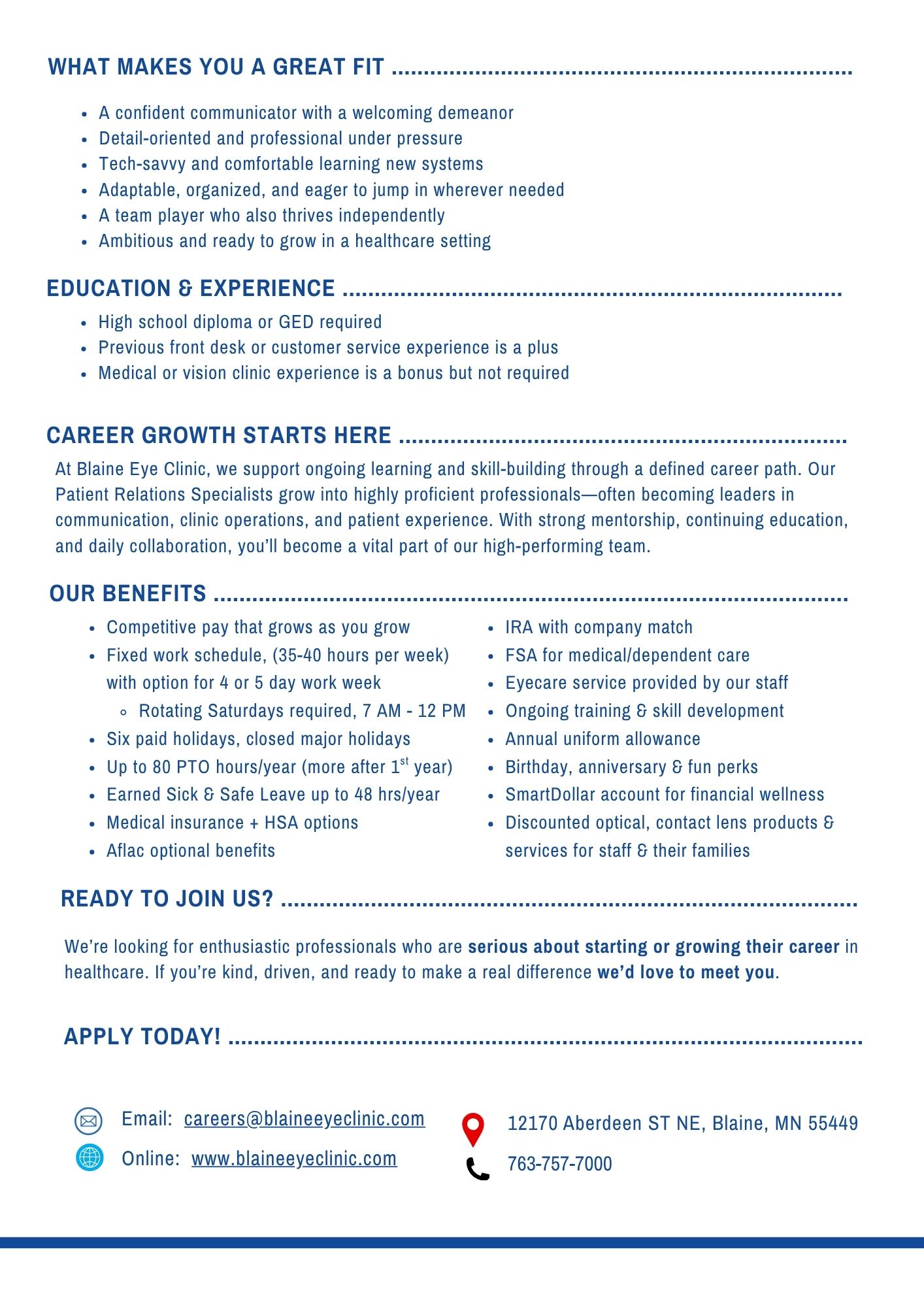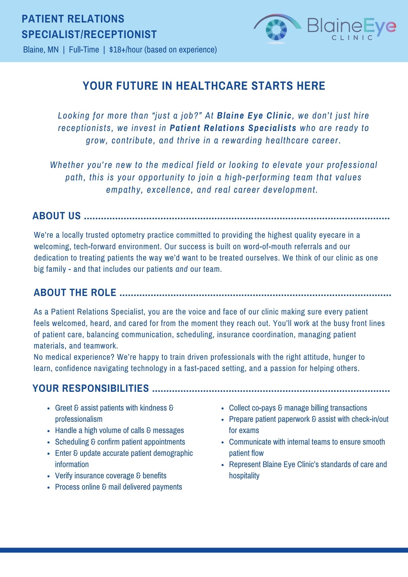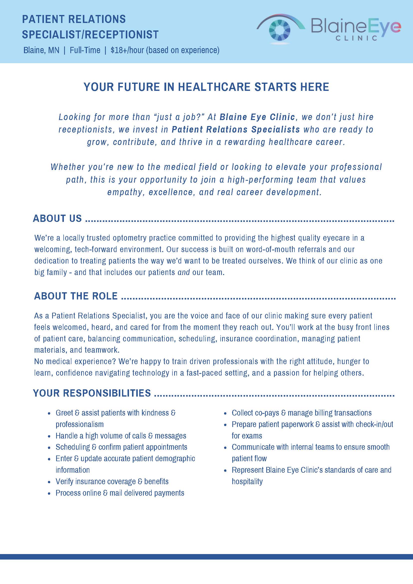 | Salary/Wage: | Competitive, starting $18.00 and up, based on qualifications |